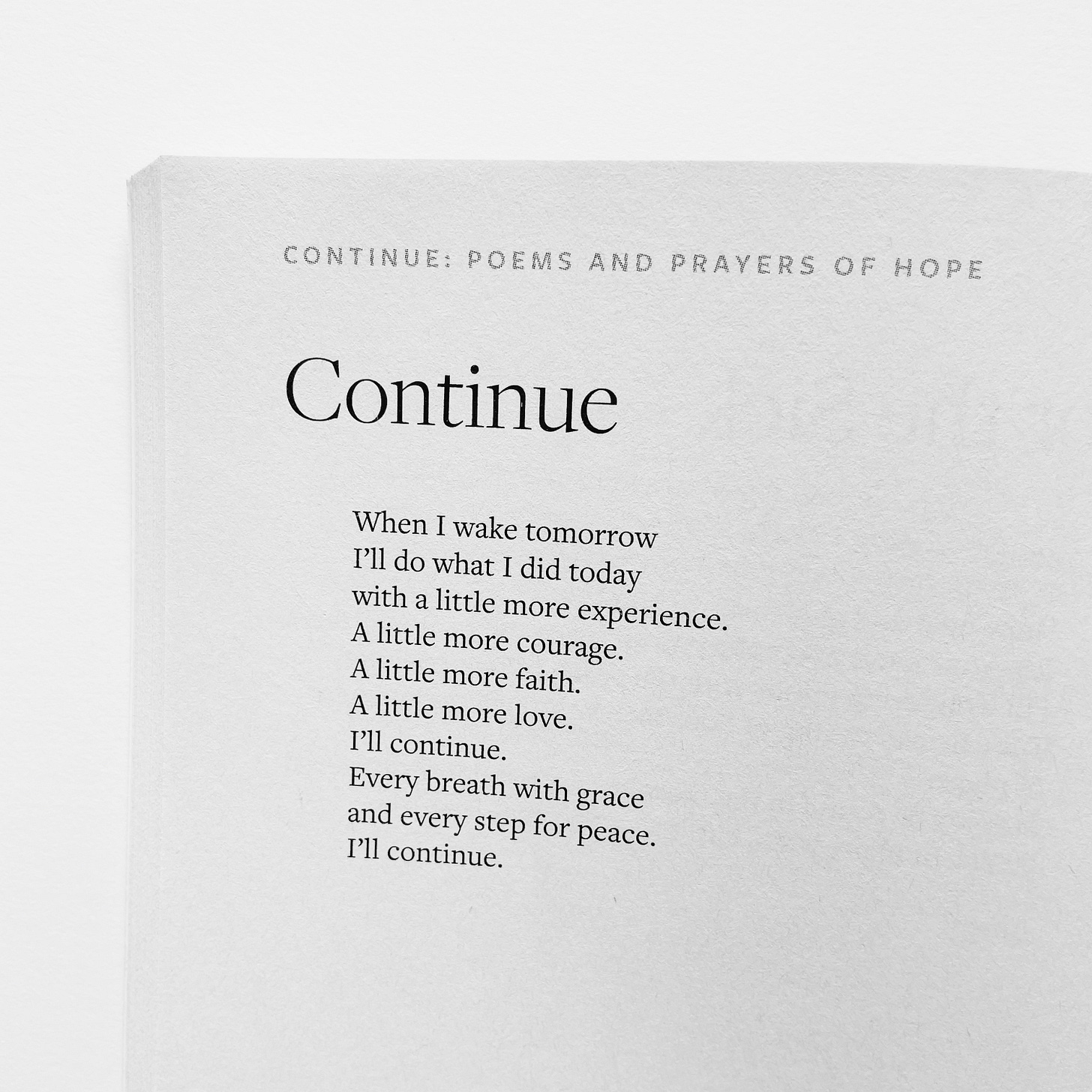 Usually we have a guest poet on these Wednesday posts, but today I want to share with you a handful of poems from my book, Continue: Poems and Prayers of Hope.